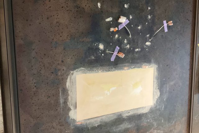 壁穴のリペアです。 すでに廃番となっている銅を腐食させて作られた特殊なシート面の補修に